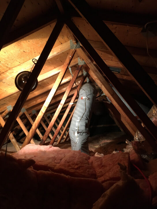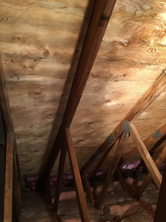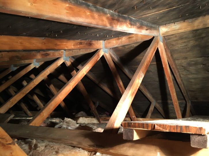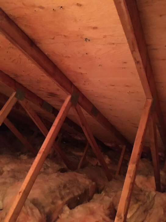 Voici un projet de décontamination de moisissures dans l’entre-toit. Cette famille nous a contactées parce que les enfants éprouvaient certaines difficultés respiratoires. Suite à notre inspection de l’entre-toit, nous avons remarqué la présence de moisissures dans l’entre-toit à un stade avancé.