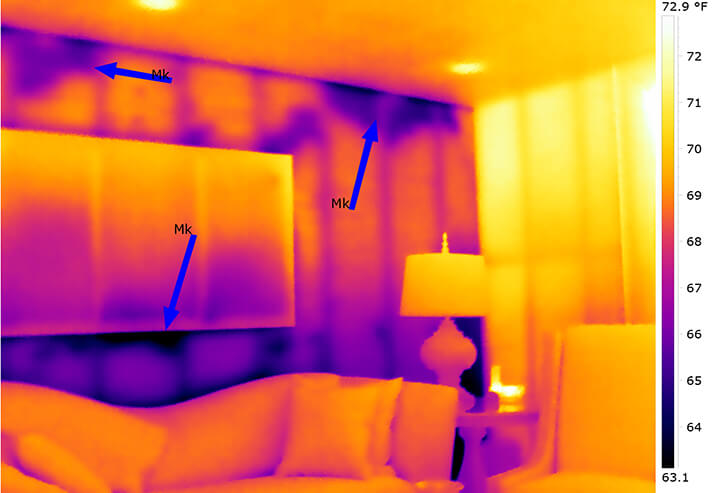 A thermal inspection using thermography imaging is the easiest and most direct method available to inspect a home’s thermal insulation specifications. This thermal inspection of your home reveals area surface temperatures using an infrared camera, and indicates heat loss areas and building failures. Thus, once a thermographic inspection has been conducted, it is possible to make a more accurate diagnosis and develop a thermal insulation protocol adapted to the specific situation.